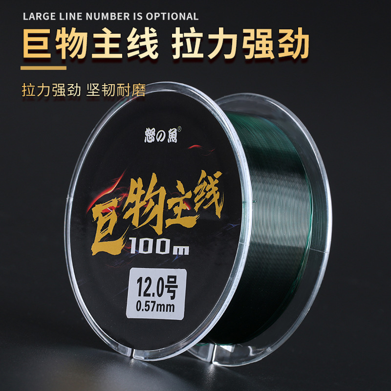 Senar pancing besar nilon sub-line grosir lubang hitam kekuatan tarik kuat 100m senar pancing Raksasa Sturgeon