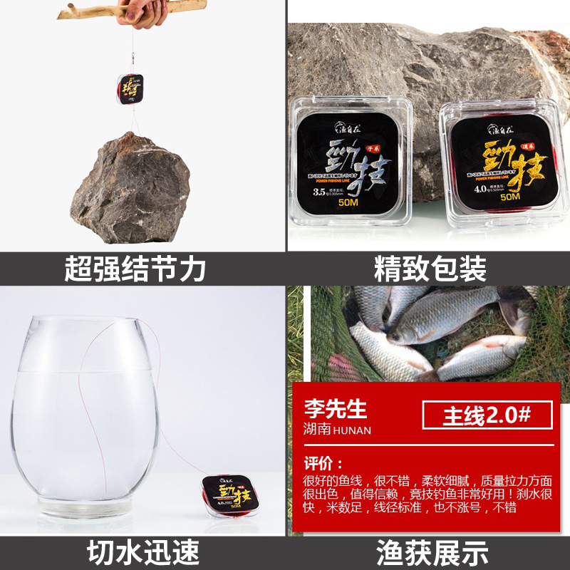 Jinji senar pancing nilon 50 m, senar pancing nilon super kompetitif, senar pancing meja
