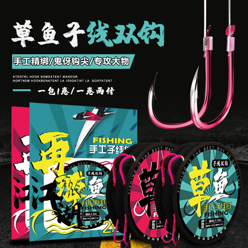 Rumput ikan mas sub-line kait ganda hantu ezeini paket 2 berbayar dalam kail ikan besar terikat sub-line set garis kait ganda