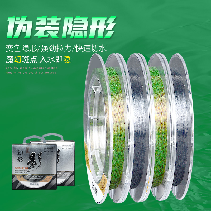 Senar pancing Phantom 50 m, senar pancing berubah warna kamuflase, senar utama lembut, senar pancing nilon elastis kuat