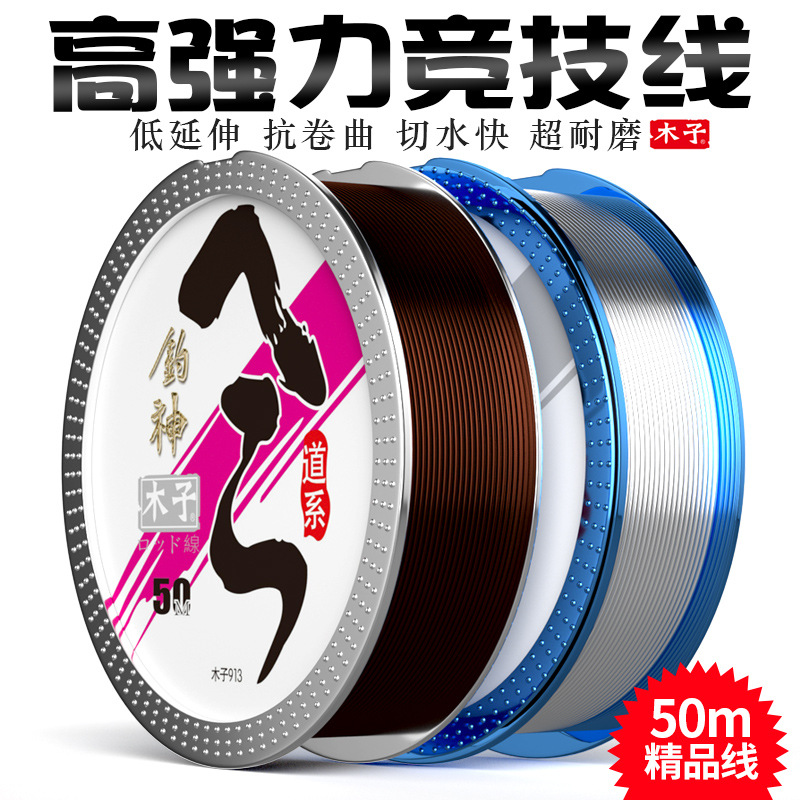 Senar pancing Muzi impor dari Jepang tali pancing nilon Tuhan memancing 50 m Taiwan Luya sub-line garis utama kekuatan tinggi anti-rolling tahan aus