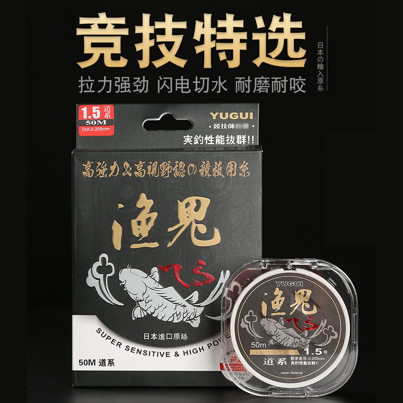 Senar pancing impor Jepang, senar pancing sub-line anti-roll 50 m tegangan super kuat nilon hitam pit objek besar