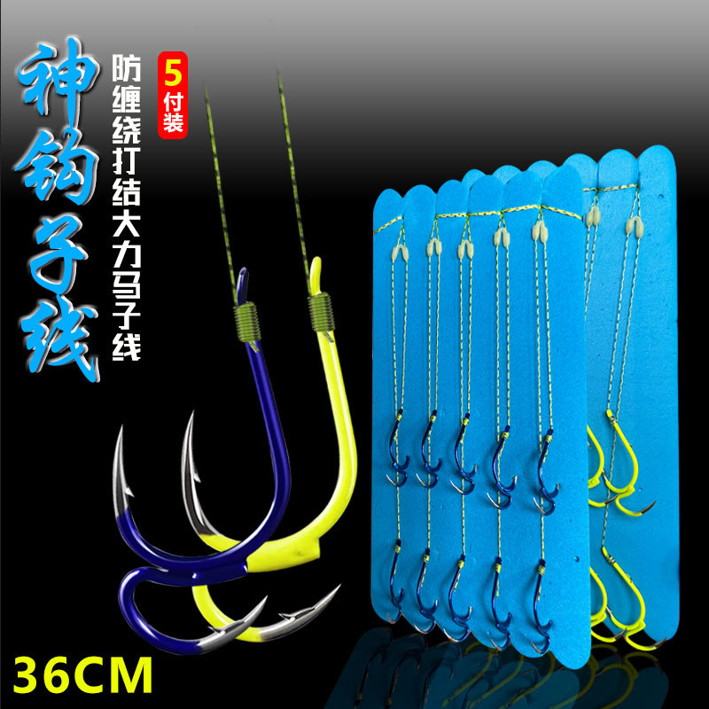 Kait pancing terikat Produk selesai benang kuda kuat kait ganda 5 pasang baja karbon tinggi isini ledakan kait pancing kail ikan mas