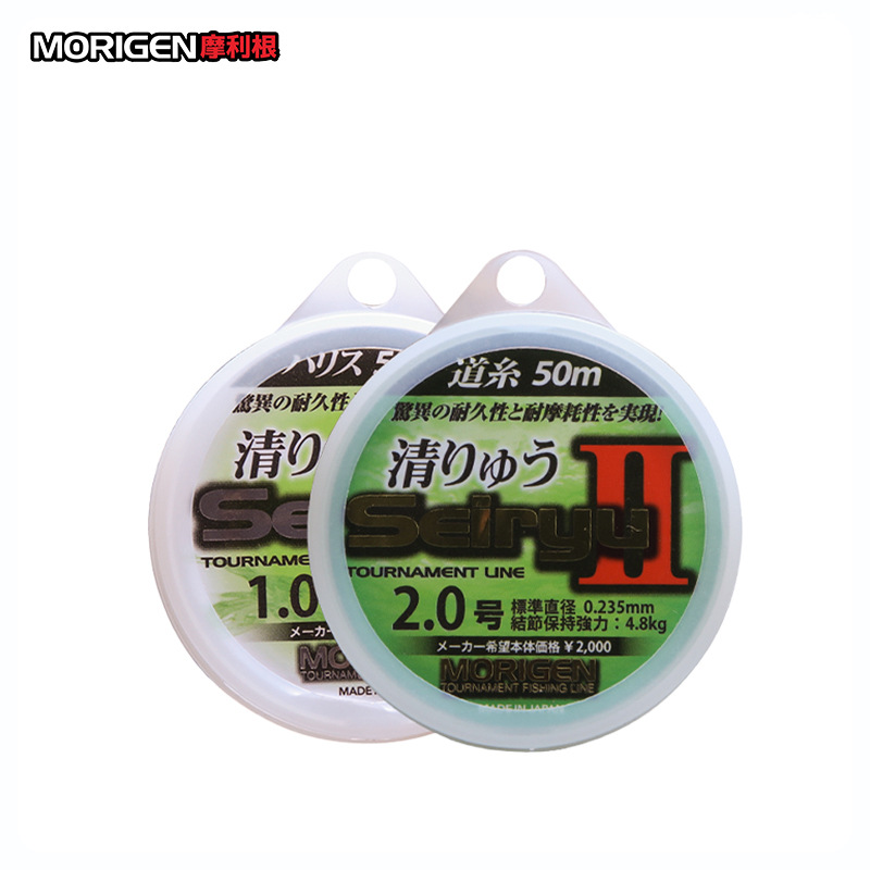 MORIGEN molligan Qingliu generasi kedua 50m benang nilon jalur utama sub-line tarik kuat tali pancing tahan aus tidak mudah digulung