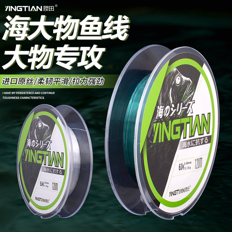 Sakurada memancing ikan hitam Sturgeon senar pancing raksasa 50 m tarik kuat objek besar garis nilon garis utama lembut transparan sub-line