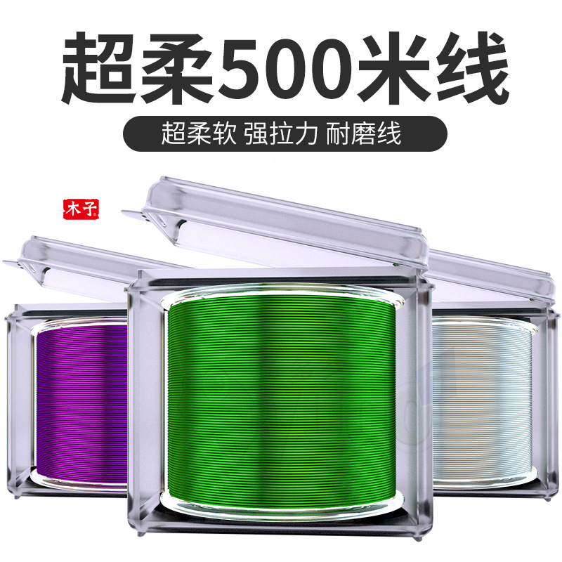 Senar pancing nilon kayu transparan 500 m, senar pancing nilon untuk memancing di laut, Jalan pancing sub-line, perlengkapan memancing grosir