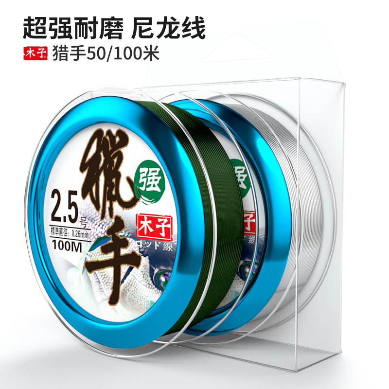 Muzi senar pancing nilon pemburu 100 m, senar pancing sutra mentah, senar utama, peralatan memancing di laut, senar pancing nilon