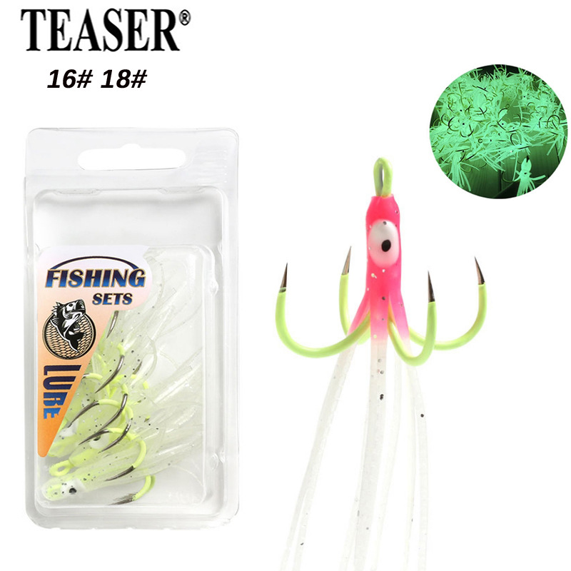Baru memancing di laut dalam perahu memancing cumi-cumi bercahaya empat kait tidak ada besi berduri hook Luya gurita empat cakar hook