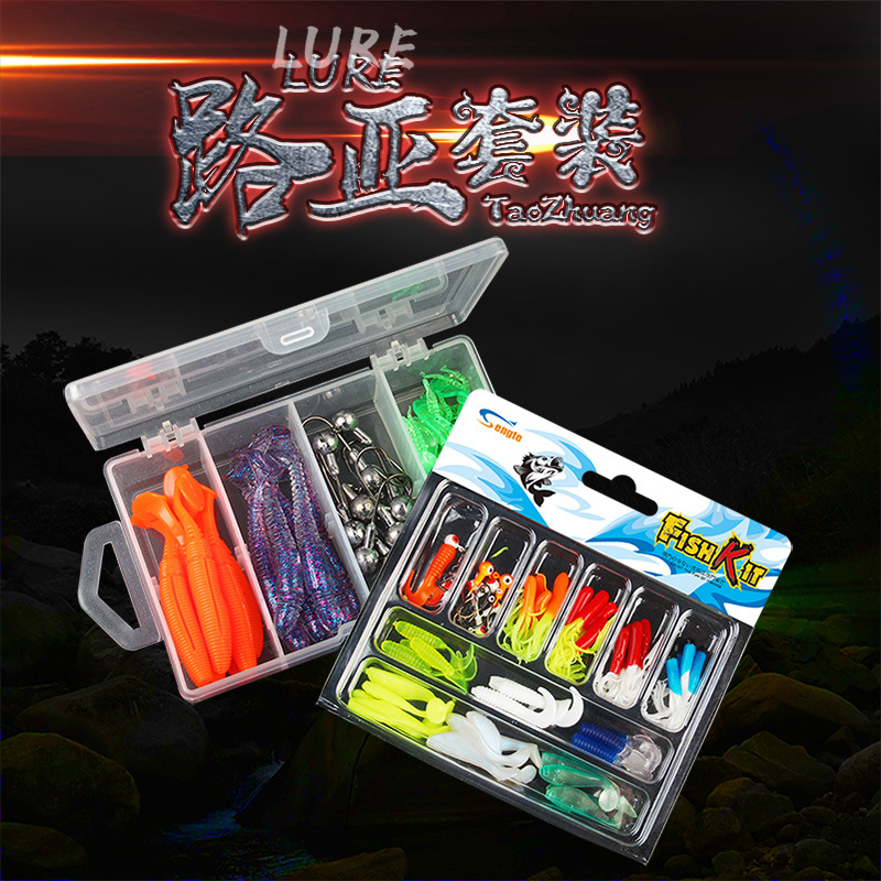 Umpan Luya Cross-border set T tail lembut umpan kepala timbal cacing lunak kait ikan Mandarin bass mulut kombinasi umpan palsu dalam kotak