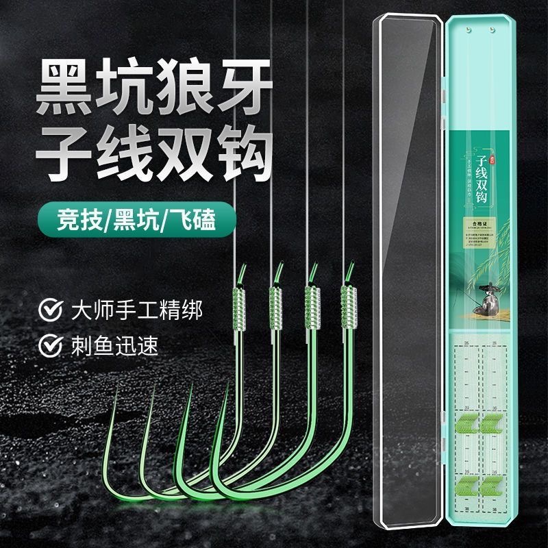 Senar Pancing Ultra-pendek Sub-benang Kait Ganda 40 Pasang Produk Jadi Set Kail Pancing Terikat Memancing Liar Kail Pancing Ikan Mas Lengan Emas Lubang Hitam Haixi Emas