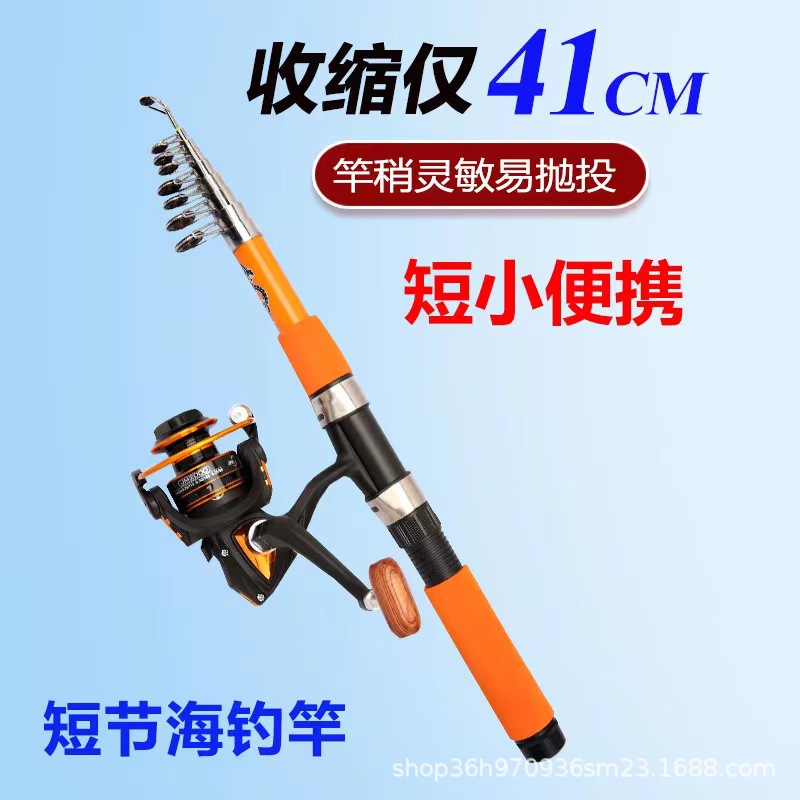 Joran Pancing Mini Portabel Ultra Pendek dengan Set Reel Drum, Joran Laut Kecil, Joran Pancing E-commerce Lintas Batas
