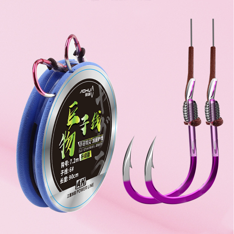 Aohu benang besar kait ganda terikat Produk selesai sesuai warna hitam ikan mas Sturgeon raksasa diperkuat benang kait isini kail ikan