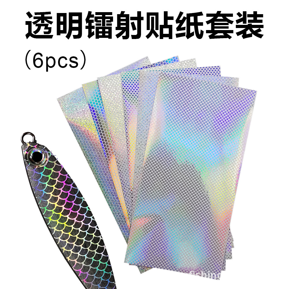 Stiker Laser transparan 6 buah setelan 20 x10cmDIY stiker perekat laser umpan kilat Luya timbangan ikan