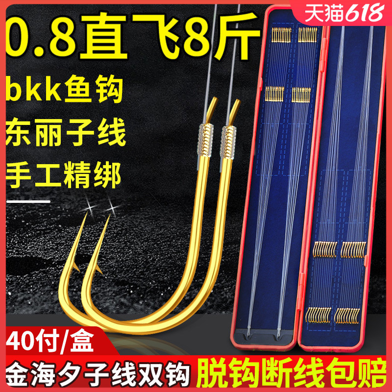Jepang barang asli impor mata kail terikat sub-thread selesai kait ganda jinhaixi berduri kail pancing setelan lengkap