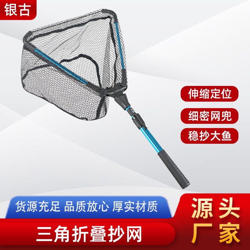 Jaring kepang lipat segitiga aluminium Aloi, jaring besar kepala salinan Aksesori perlengkapan memancing, jaring kepang tangan, setelan jaring ikan