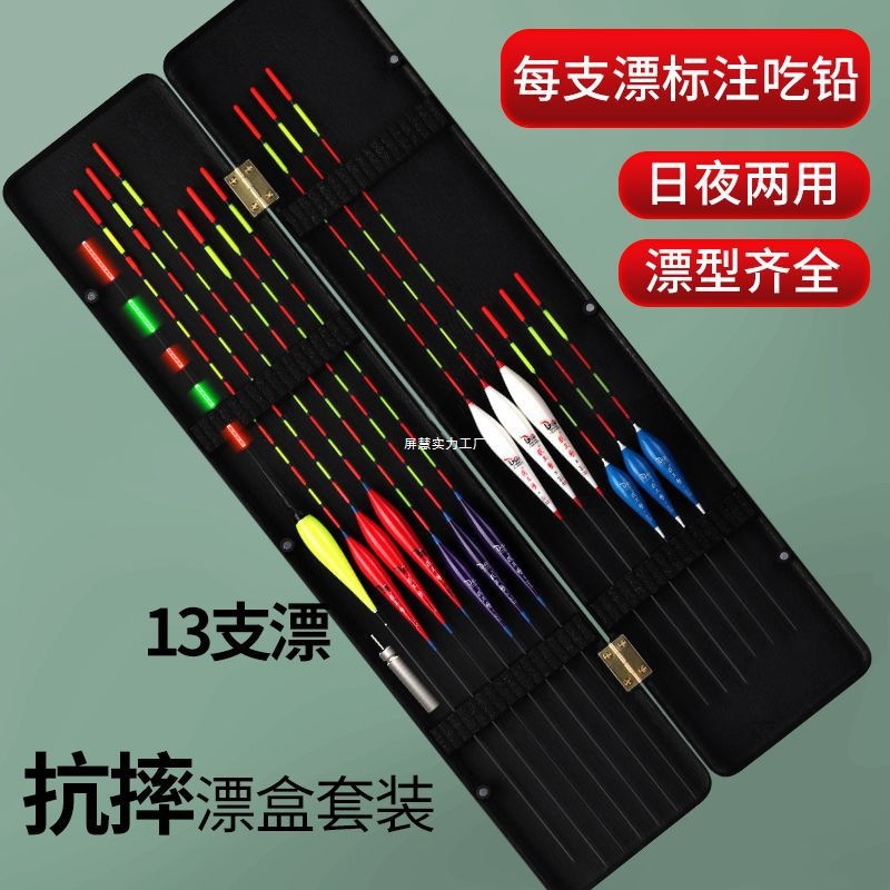 Set lengkap pancing liar siang dan malam hari, sensitivitas tinggi, pelampung tujuan ganda, penangkapan ikan, 13 ikan, kotak pelampung malam, set penuh