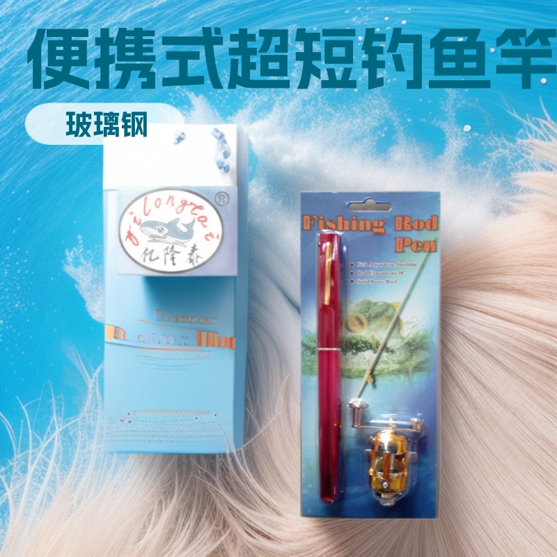 Joran pancing mini pena e-commerce, tongkat pancing mini dengan setelan roda drum, joran laut portabel ultra-pendek