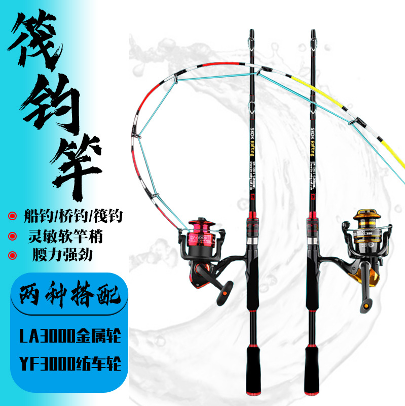 Pasokan langsung pabrik pantai melempar ekor lembut tongkat pancing rakit karbon tembakan panjang tongkat rakit kecil serat kaca batang rakit roda pancing setelan joran pancing