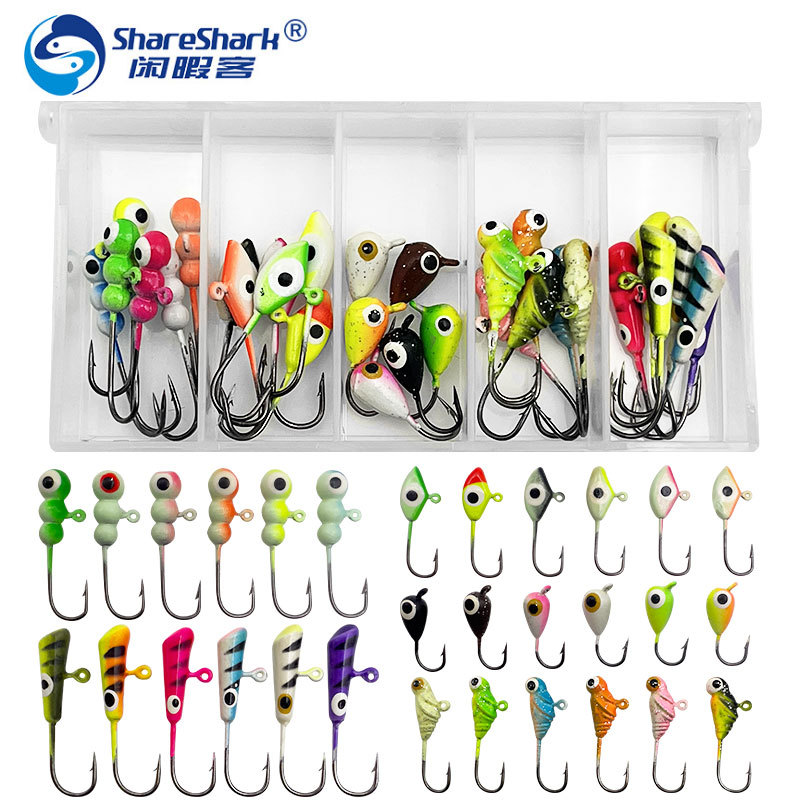 Tersedia dalam kotak es memancing lebih dari setelan variasi akar kail pancing Mini kail timah kecil musim dingin kait pancing gaya dapat acak