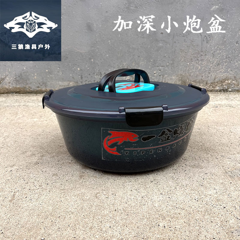 Baskom senapan kecil dalam dengan tutup, umpan baskom terbuka empat buah baskom umpan langsung portabel dengan sendok perlengkapan memancing pencampur umpan baskom grosir