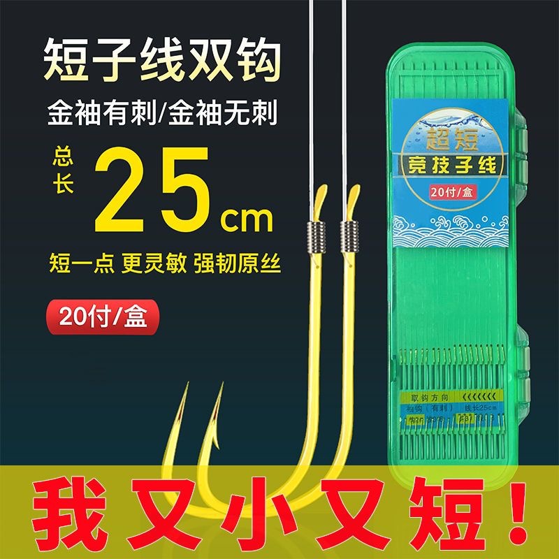 Kait ganda benang sub-thread selesai, 25cm kait emas terikat lengan kail ikan kotak jinhaixi setelan kait lengan karper anti-winding