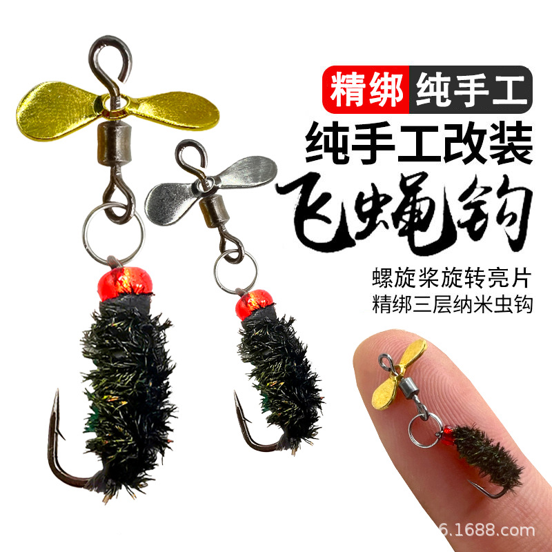 Baling-baling berputar kait lalat tidak merusak garis biji melon payet setelan objek mikro Luya umpan kuda mulut Lubei putih strip