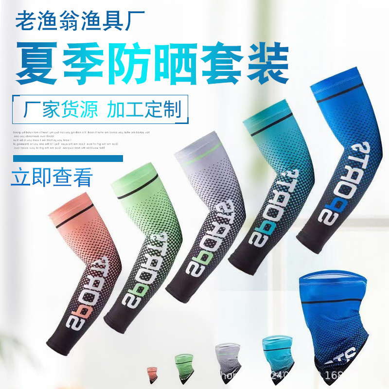 Sarung tangan memancing, topi memancing luar ruangan lengan memancing syal sarung tangan Kamuflase set empat potong baru musim panas pelindung matahari