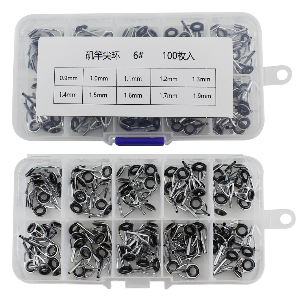 Set cincin panduan batang batu tinggi berburu 100 buah setelan mata pemandu keramik Aksesori joran pancing kotak Aksesori pancing lintas batas