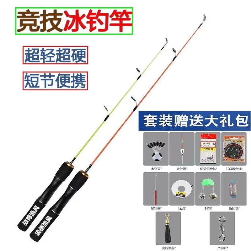 Tongkat pancing es, setelan memancing rakit ultra pendek gagang pistol lurus tongkat pancing es memancing musim dingin set lengkap super keras solid Luya tongkat laut