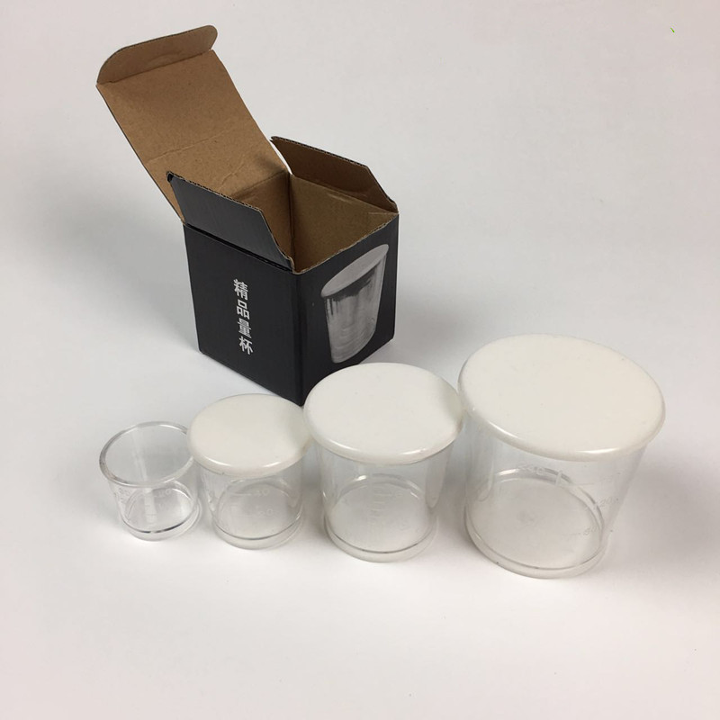 Gelas pengukur empat dalam satu set 240 120 60 30ml alat pancing plastik dengan timbangan dan tutup grosir