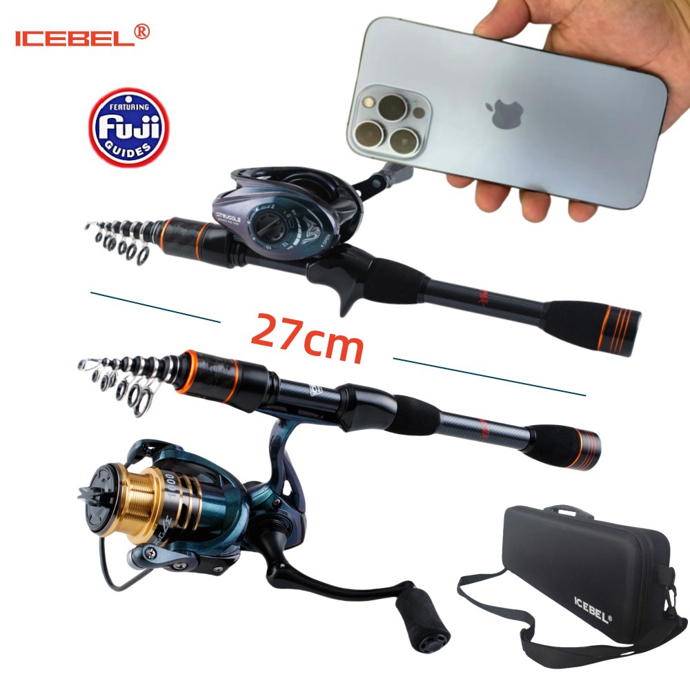 Batang Pancing Super Pendek Batang Pancing Mini Karbon Batang Aliran Pancing Super Ringan Super Keras 28 Set Pancing Portabel