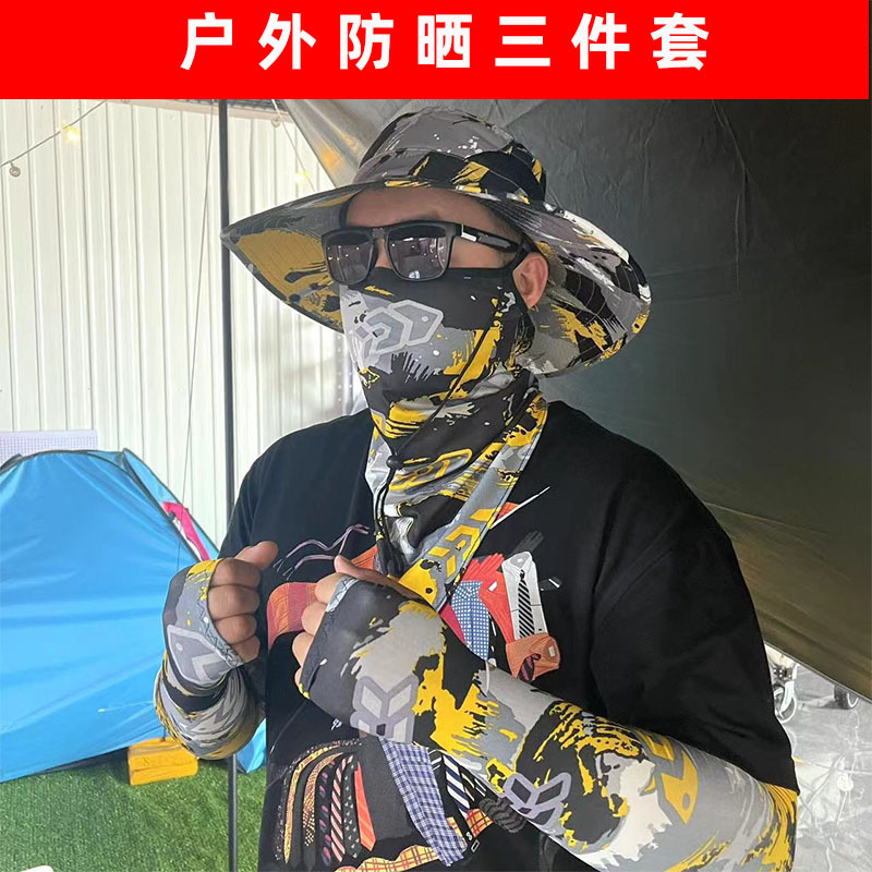 Topi pelindung matahari memancing luar ruangan pria, tiga potong handuk telinga musim panas tepi besar topi nelayan topi matahari lengan es