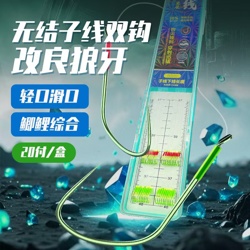 Kait ganda sub-line besar terikat vertikal kait ikan biru selesai kelompok memancing ikan sturgeon suit diperkuat kait berduri