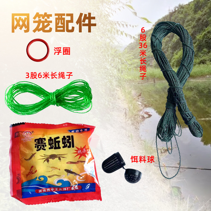 Race worm net cage umpan kandang kepiting crayfish net cage lima buah set 6 M/36 m Aksesori kandang jaring tali panjang