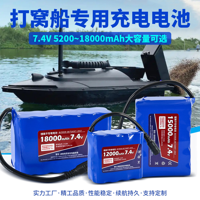 Baterai lithium 18650, kapal pancing dengan remote control daya tinggi 5200/9600 mA 7.4v, baterai lithium daya isi ulang