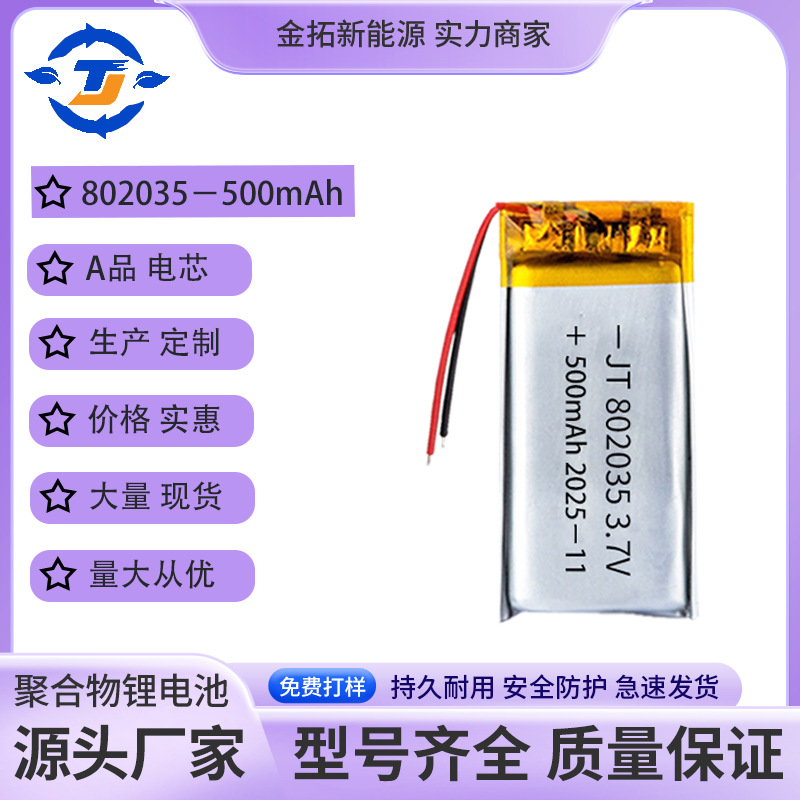 Produsen 802035 Polymer Baterai Lithium 3.7V Earphone Baterai Isi ulang 500mAh Kotak Suara Lampu Disinfeksi Baterai Lithium
