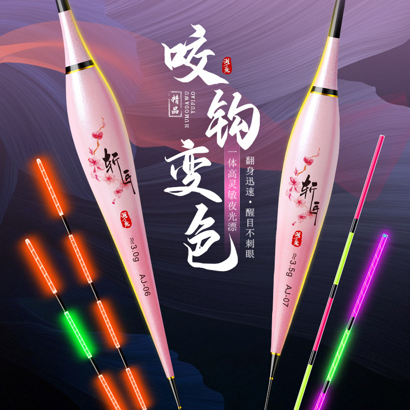 Gigit Hook Berubah Warna Cahaya Malam Mengambang Pengapung Ekor Keras Terintegrasi Cahaya Dingin Sensitif Tinggi Eye-catching Elektronik Pengapung Malam Pengapung Ikan Mas Mulut Ringan