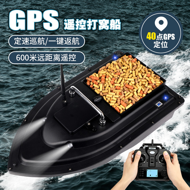 Perahu umpan dengan jangkauan 500 meter, tiga kompartemen, 40 titik penentuan posisi GPS, fitur kembali otomatis satu tombol, perahu umpan kendali jarak jauh nirkabel pintar.