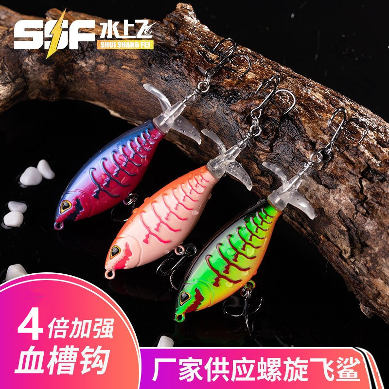 Produsen grosir peralatan memancing umpan umpan umpan umpan umpan umpan imitasi permukaan air traktor baling-baling ganda spiral hiu terbang
