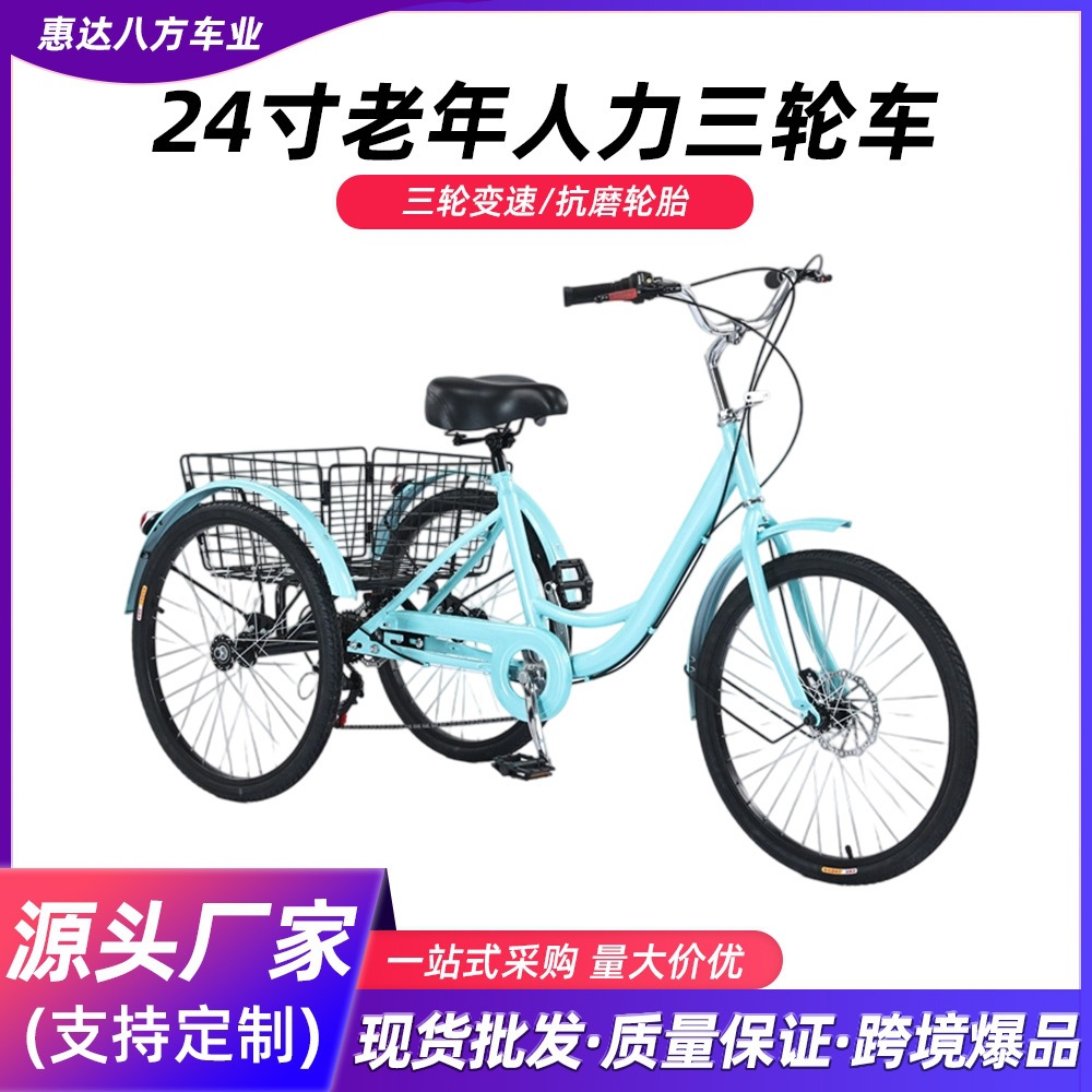 Produsen Ekspor 24 Inci Sepeda Roda Tiga Tenaga Kerja Orang Tua Orang Dewasa Sepeda Motor Roda Besar Kecepatan Variabel Roda Tiga