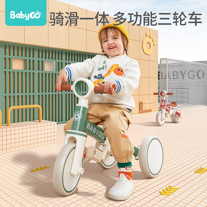 Babygo sepeda roda tiga anak-anak, PIT asli multifungsi ringan untuk bayi keseimbangan