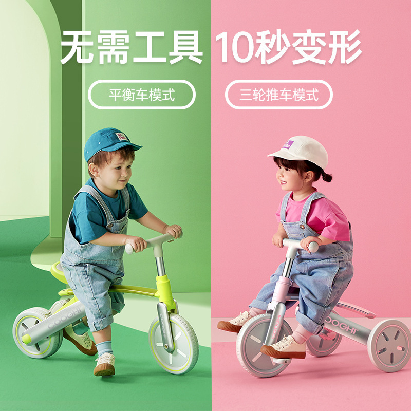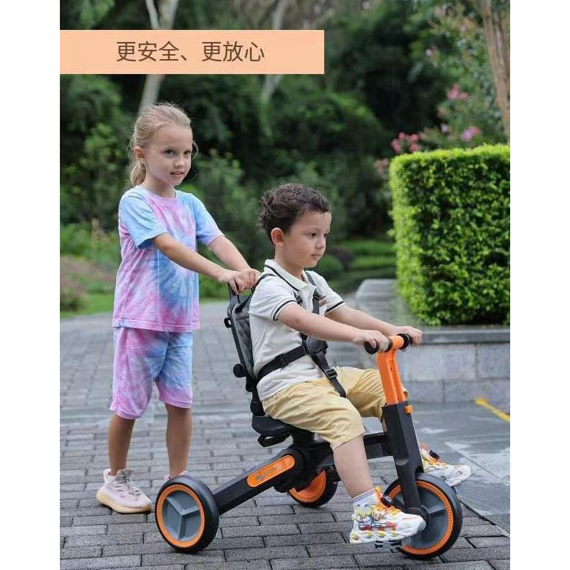 Amazon stok tersedia nukasi M6 sepeda roda tiga anak-anak skuter sepeda keseimbangan troli empat dalam satu