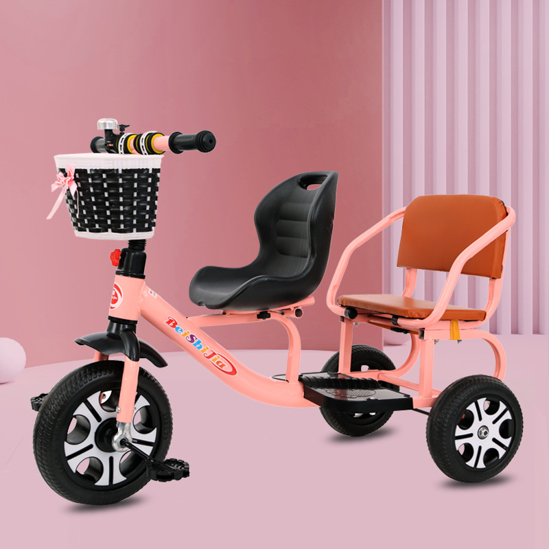 Model baru sepeda roda tiga dua anak usia 1-6 tahun ukuran besar sepeda kursi ganda sepeda sepeda sepeda bayi produsen
