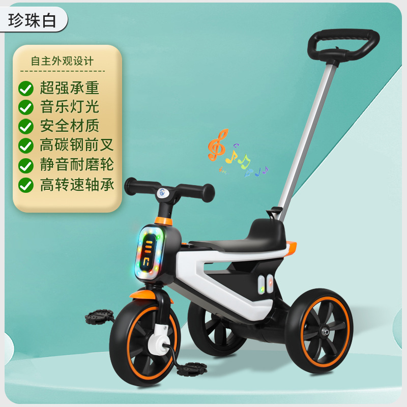 Sepeda roda tiga anak-anak, kereta dorong bayi lintas batas dengan lampu musik Dorong Tangan
