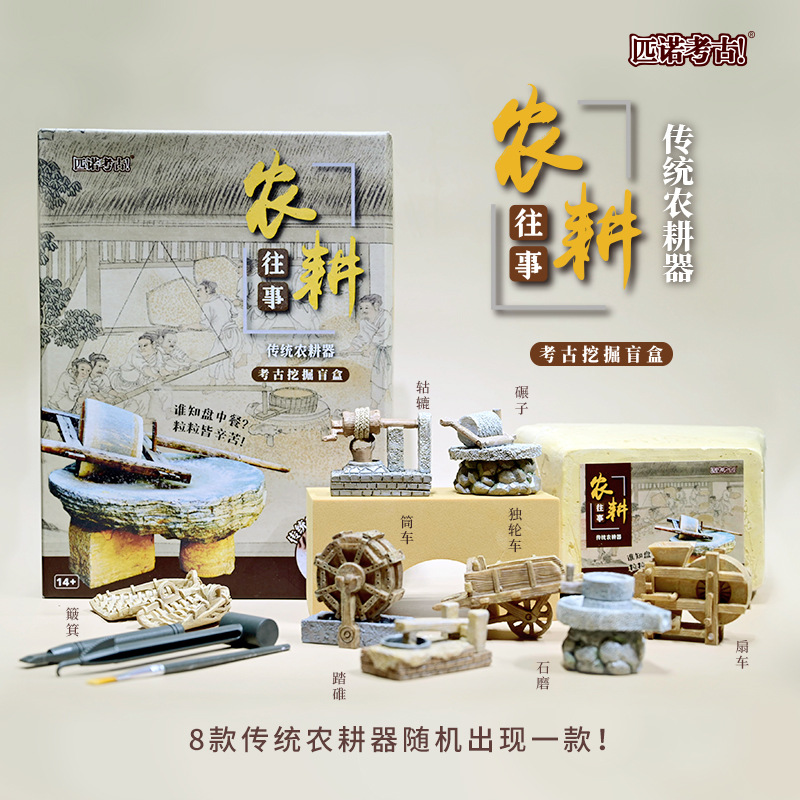 Pinuo mainan kotak buta penambangan pertanian asual, perangkat pertanian tradisional roda kereta dorong roda mobil pabrik batu anak-anak