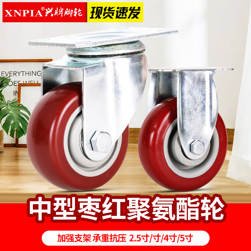 Roda Kaki Poliuretan PVC Warna Merah Ringan 1 Inci 1,25 Inci 1,5 Inci 2 Inci Kursi Sofa Meja Rias Roda Universal
