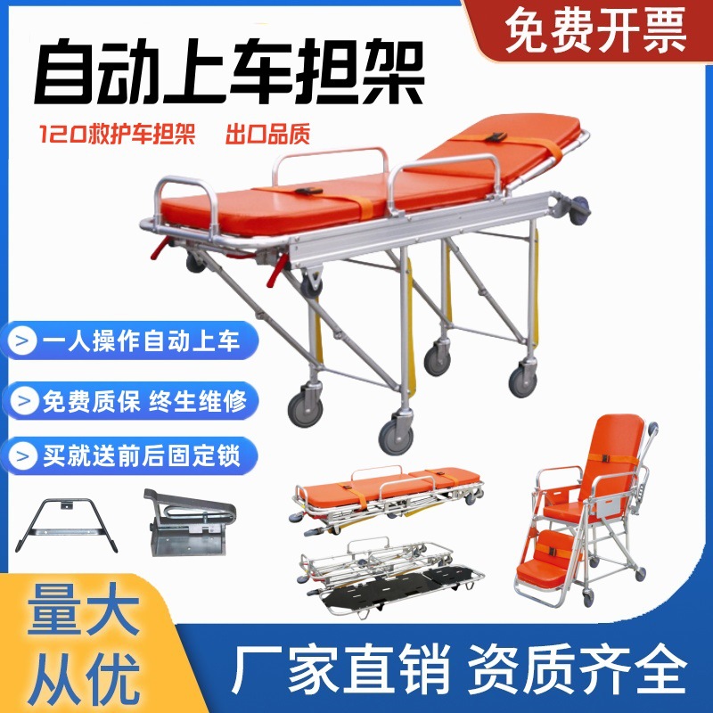 Tandu ambulans otomatis, troli penyelamatan multifungsi, tandu bisa dilipat 120 Aluminium Aloi