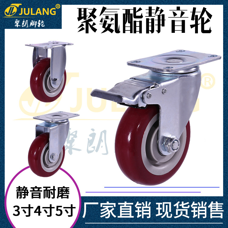 Julang 3-inch 4-inch 5-inch polyurethane PU bisu troli Roda universal rak menengah kastor terarah
