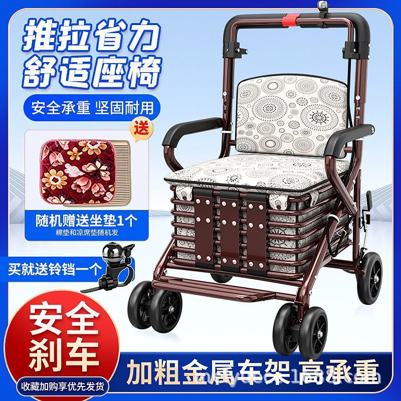 Troli bantu jalan orang tua dapat duduk dan mendorong multi-fungsi belanja makanan Portabel diperluas dan dapat dilipat