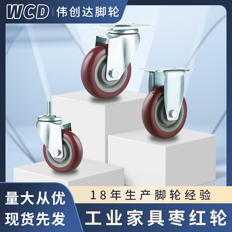 Roda Kaki Poliuretan Merah Jujube Ringan Roda Rem Universal Tahan Aus